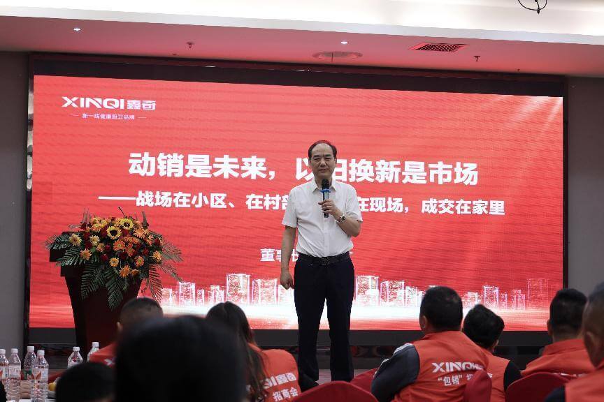 为了更好地抓住“以旧换新”带来的机会,鑫奇集团在今年6月成立动销部,专门指导帮扶全国各地代理商进行“以旧换新”包销活动,带领他们在当地挖掘客户、抢占市场,充分发挥动销的力量。目前全国各地动销活动风生水起,鑫奇动销总监付辉文在庆典上激情澎湃地宣讲了如何做好两天一场以旧换新零售2万的动销实战,从准备到执行,从营销到服务,每个步骤环环相扣,才得以确保动销的斐然成绩。