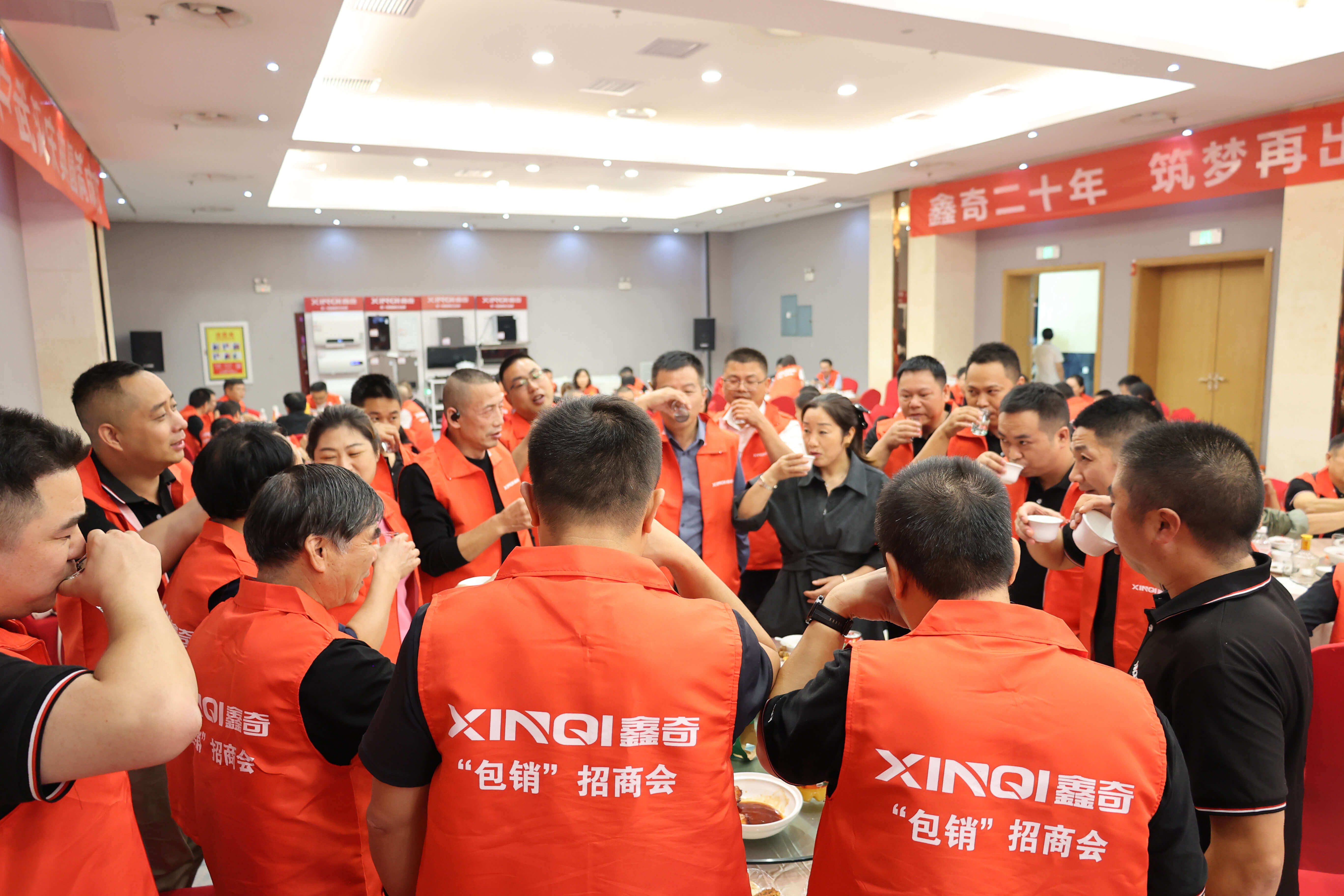 随后,付董事长携各营销精英,一同向现场嘉宾伙伴举杯祝酒,共庆荣耀时刻,共贺鑫奇二十周年生日快乐,共祝鑫奇创造更加美好的未来!