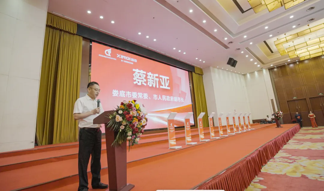 在会议开始,娄底市委常委、市人民政府副市长蔡新亚在致辞中表示:“我们将始终秉持重商、亲商、安商的理念,构建全链条、全要素、全周期的服务体系,全心全意为大家投资兴业创造最优的环境、提供最好的服务,真正让每一份投资都收获价值,让每一份合作都结出硕果!”
