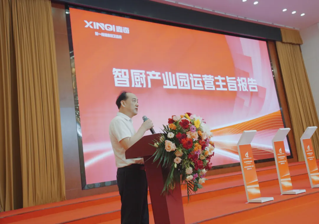 鑫奇董事长付冬文作为土生土长的娄底人,对家乡有着深厚的情怀,他不仅让自己产业“归巢”,实现娄底和广东顺德双基地运作,做大做强鑫奇品牌,而且还带动厨电配套产业链伙伴组团入驻,快速推进智厨产业园开工建设。他表示:“娄底处于湖南几何中心,交通便利,拥有国际久负盛名的钢材材料谷的产业集群,拥有颇具战略眼光、高效执行力、肯担当的领导团队,他们创造了良好的营商环境,为产业发展提供了良好的基础,更为打造湖南鑫奇(国际)智厨产业园创造了完善并极具竞争力的有利条件”。在运营主旨报告中他提到娄底具备诸多优势,并明确产业园的发展目标和未来发展规划,打造百亿级产业园项目指日可待。